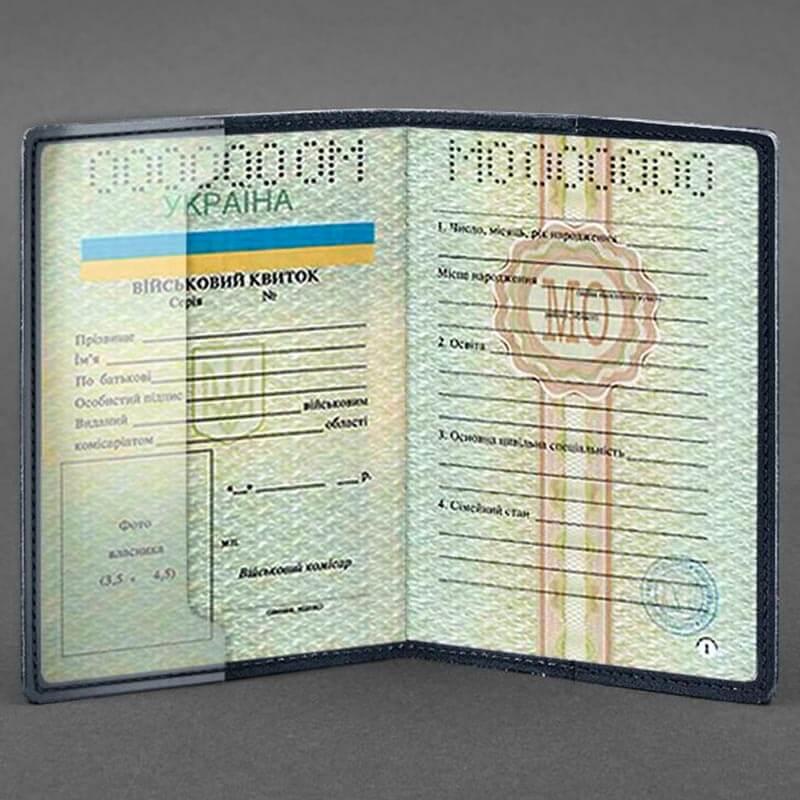 Внутри два отсека для удобного расположения документа. Обложка с прозрачным внутренним карманом позволяет расположить военный билет в развернутом виде и демонстрировать документ, не доставая его из обложки.