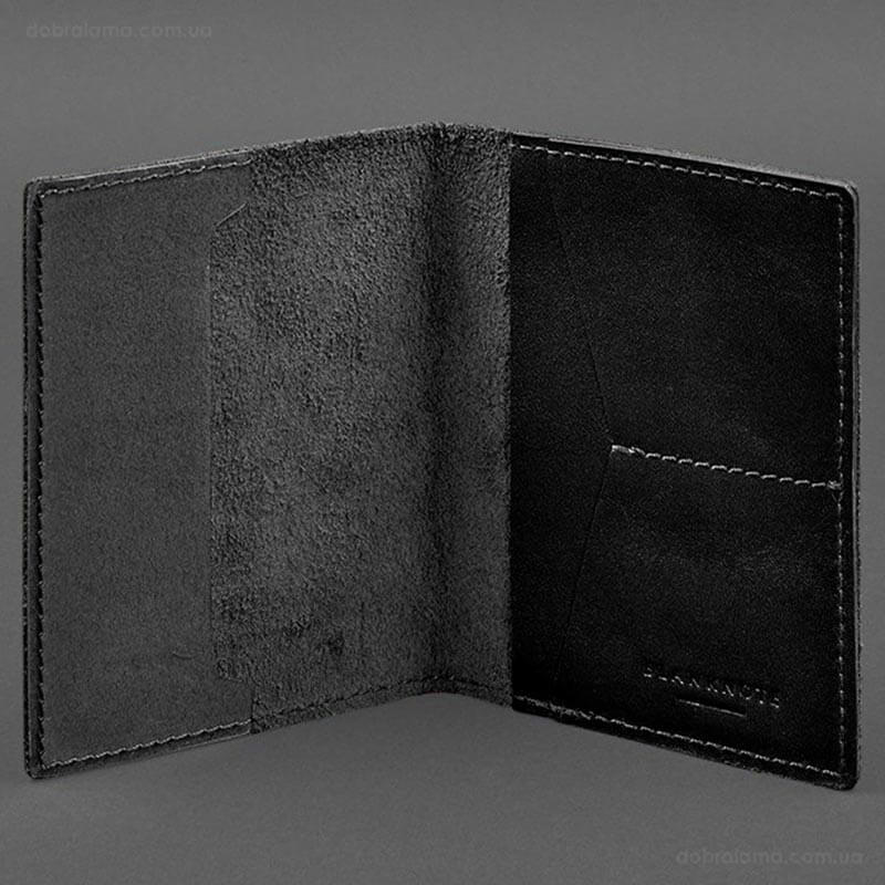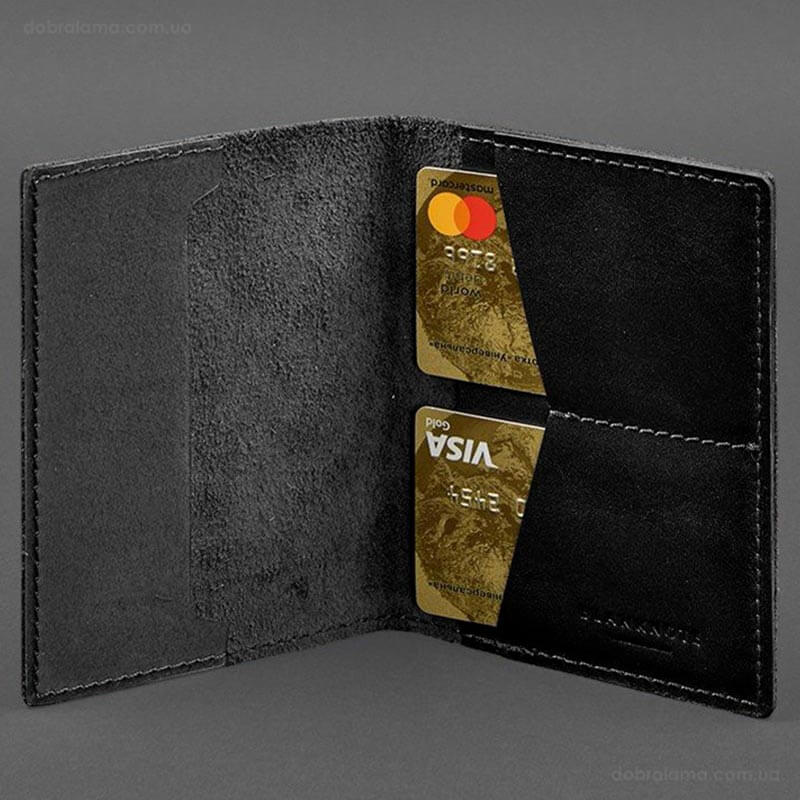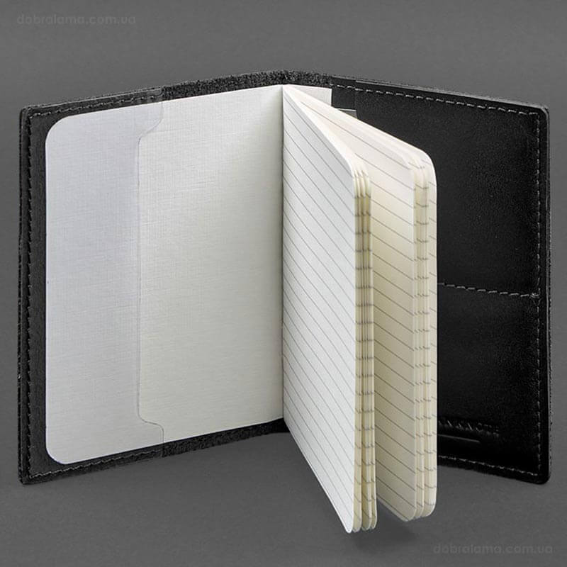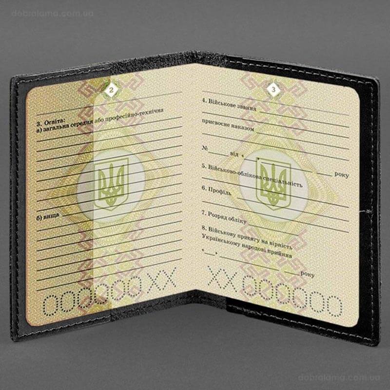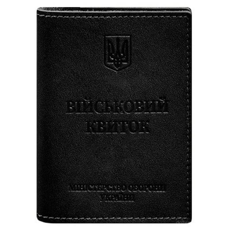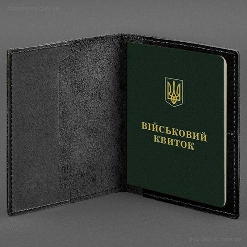 Кожаная обложка для военного билета 7.2 c кармашками (черная)