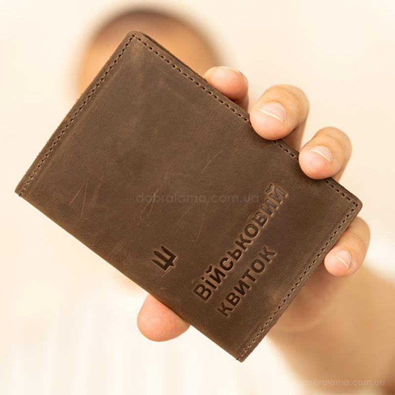 Кожаная обложка для военного билета 7.3P (темно-коричневая) кожа Crazy Horse