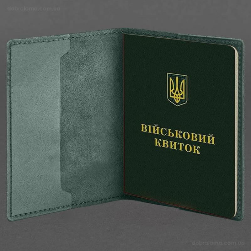 Кожаная обложка для военного билета 7.3P (зеленая) кожа Crazy Horse