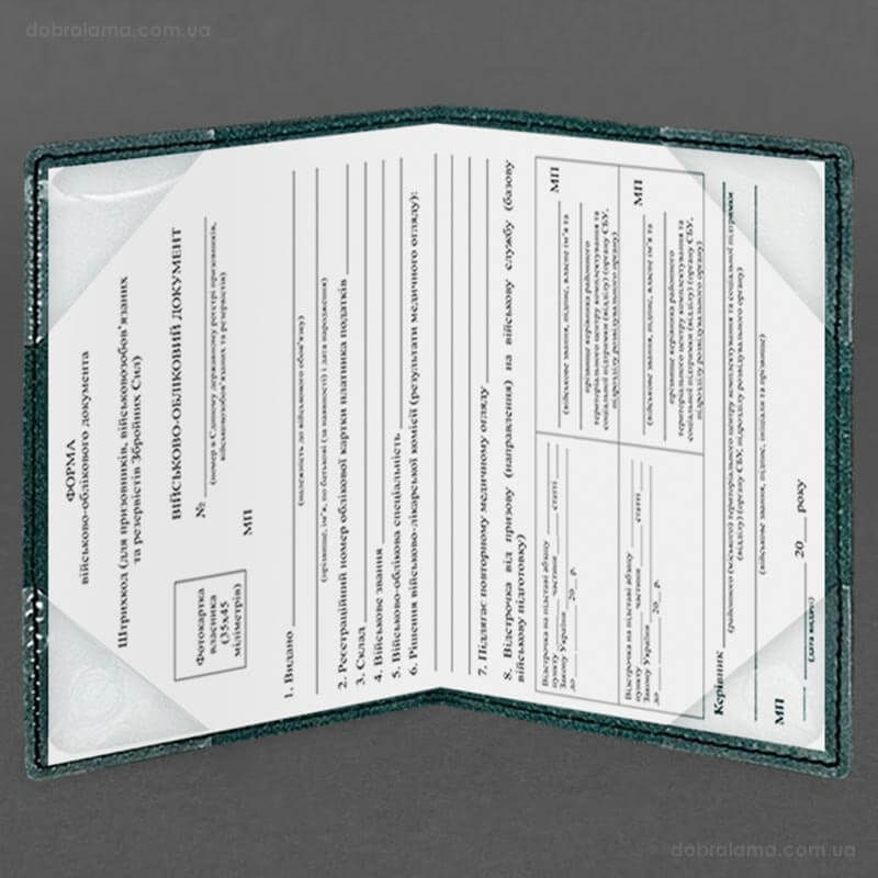 Кожаная обложка для военного билета (под военно-учетный документ) 7.4 А5 (зеленая)