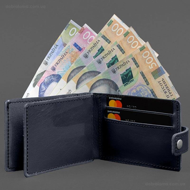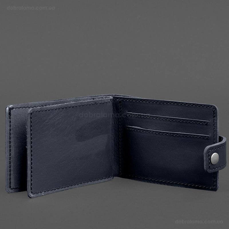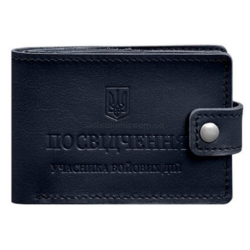 Кожаная обложка-портмоне для картонного удостоверения УБД (темно-синяя)