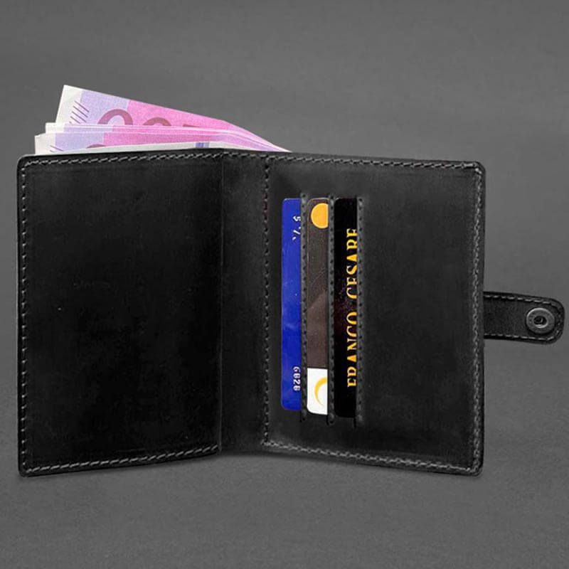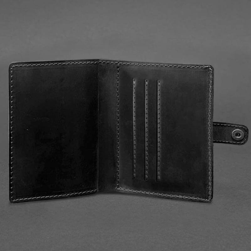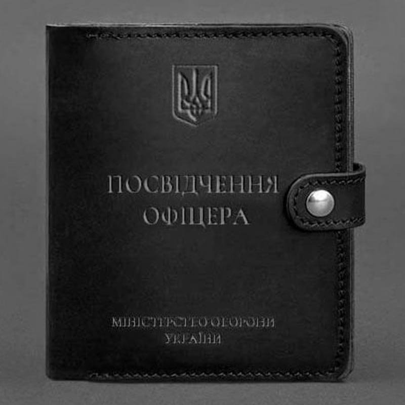Кожаная обложка-портмоне для удостоверения офицера 11.0 (черная) кожа Crazy Horse