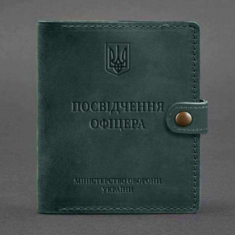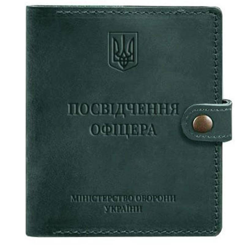 Кожаная обложка-портмоне для удостоверения офицера 11.0 (зеленая) кожа Crazy Horse