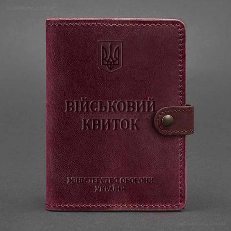 Кожаная обложка-портмоне для военного билета 15.0 (бордовая) кожа Crazy Horse