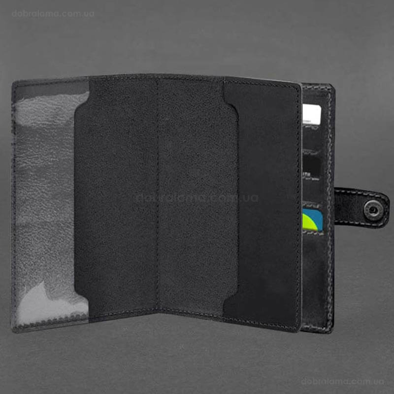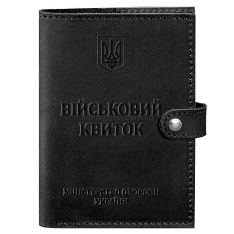 Кожаная обложка-портмоне для военного билета 15.0 (черная) кожа Crazy Horse