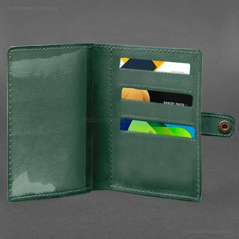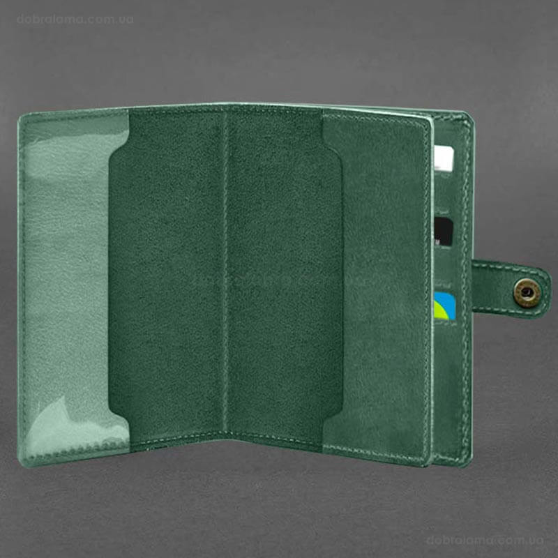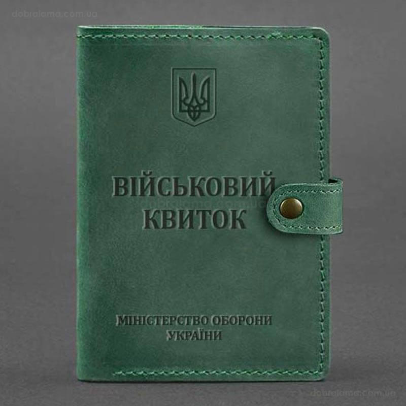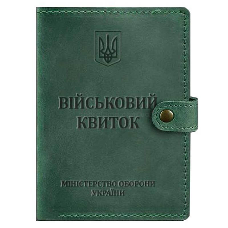 Кожаная обложка-портмоне для военного билета 15.0 (зеленая) кожа Crazy Horse