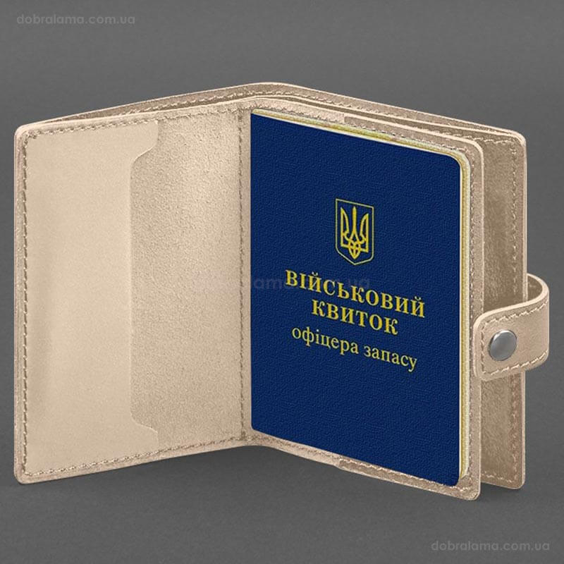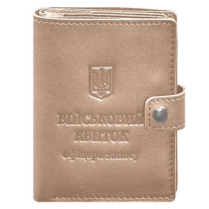 Кожаная обложка-портмоне для военного билета офицера запаса 21.0 (светло-бежевая)