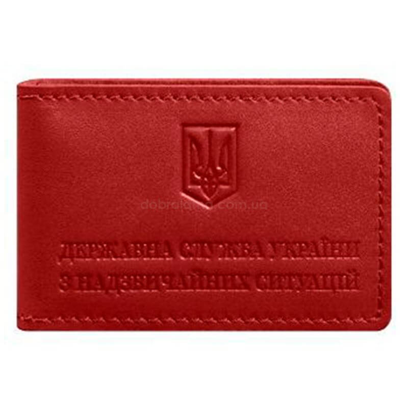 Кожаная обложка с карманом для удостоверения ГСЧС (красная)