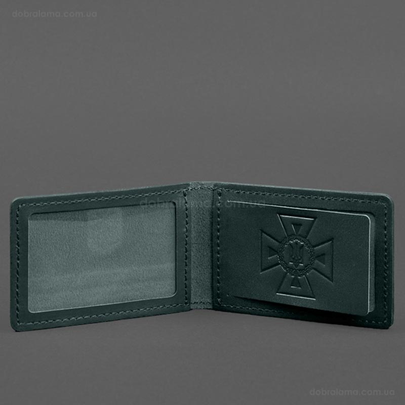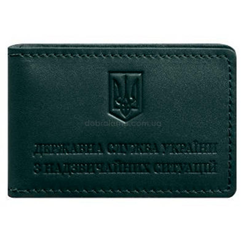 Кожаная обложка с карманом для удостоверения ГСЧС (зеленая)