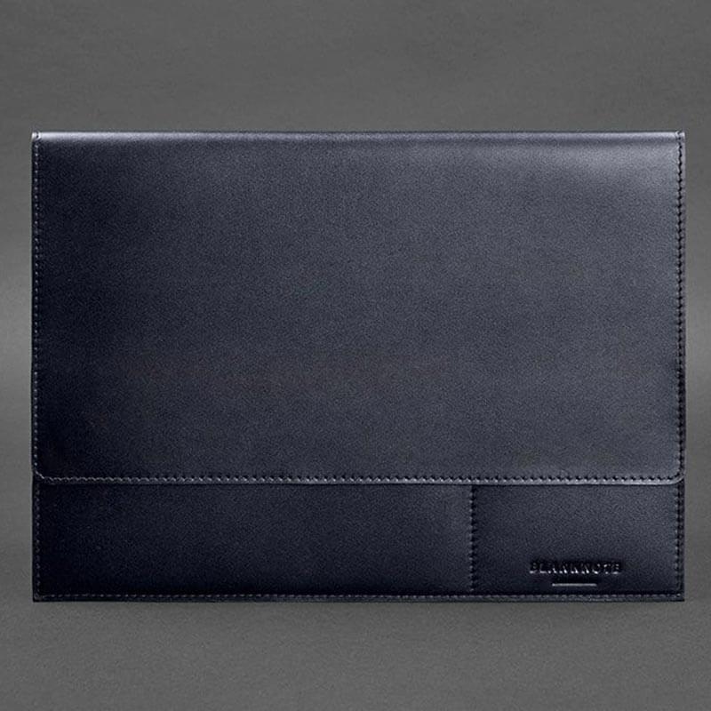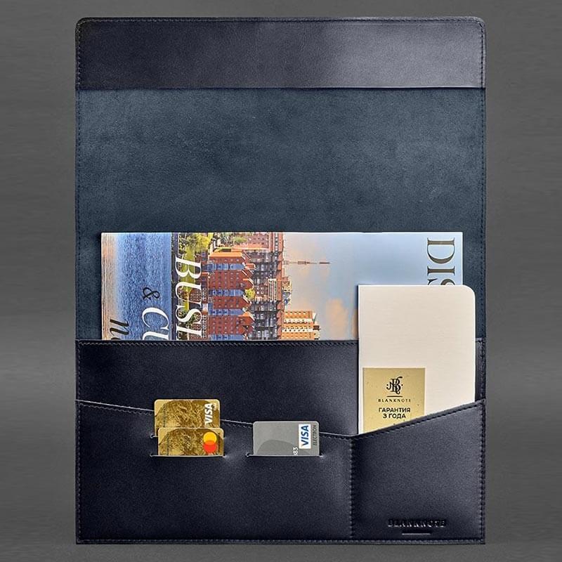 Кожаная папка для документов А4 на магнитах (темно-синяя)