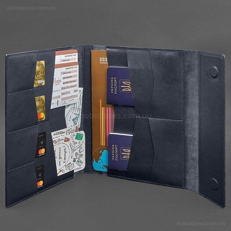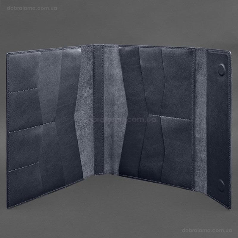 Кожаная папка для документов А4 «Семейная» на магнитах (темно-синяя)