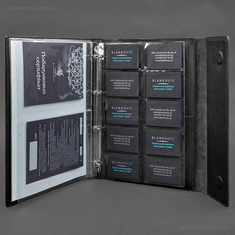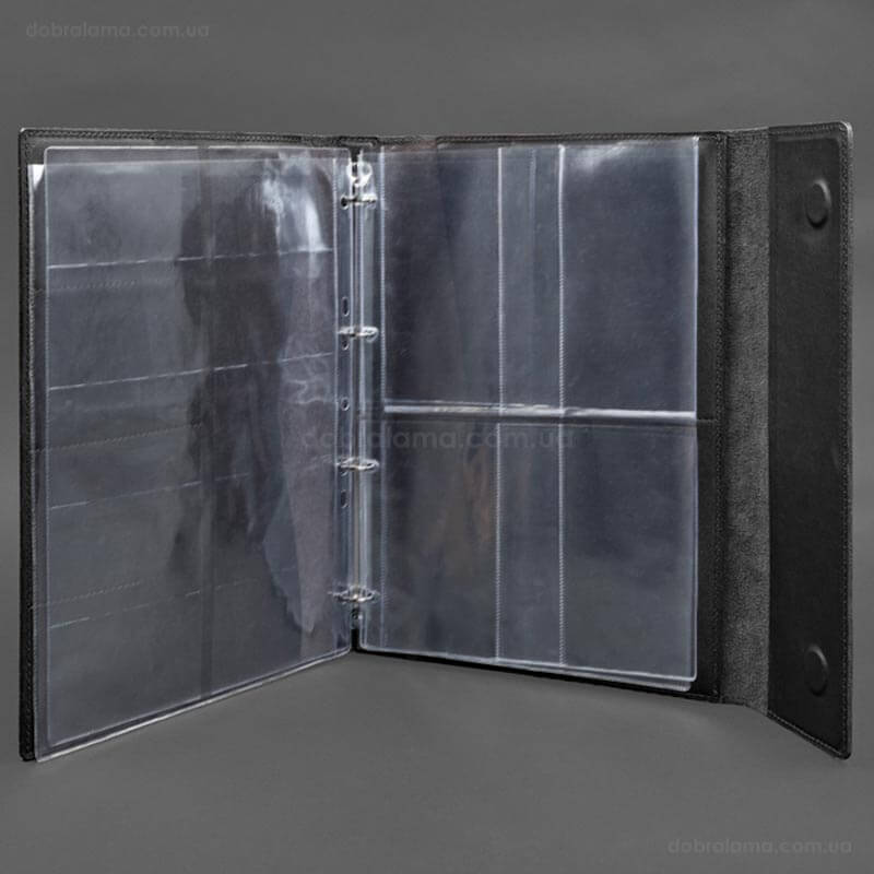 - 1 файл с 10-ю карманами для документов карточного типа (ID паспорт, банковские карты, визитки). Размер карманов – 94х59 мм