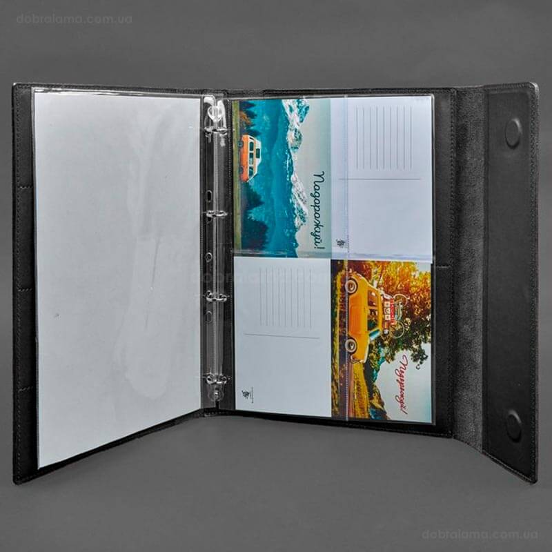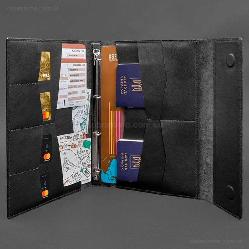 - 1 файл с 4-мя карманами для паспортов (внутренний украинский паспорт-книжка или зарубежный без обложки). Размер карманов – 103х144 мм.
