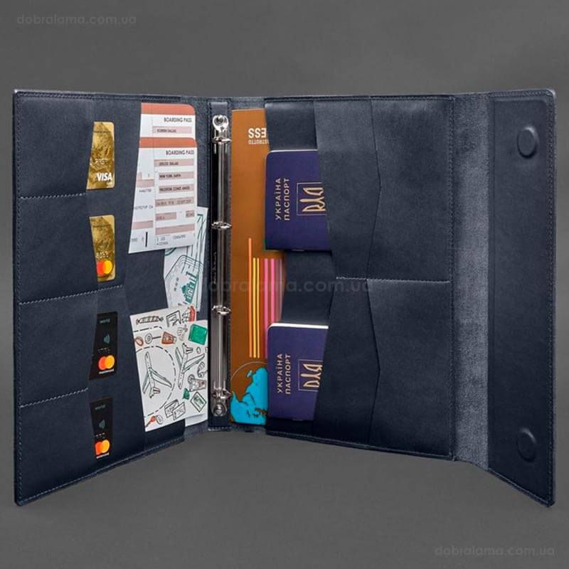 - 1 файл с 4-мя карманами для паспортов (внутренний украинский паспорт-книжка или зарубежный без обложки). Размер карманов – 103х144 мм.