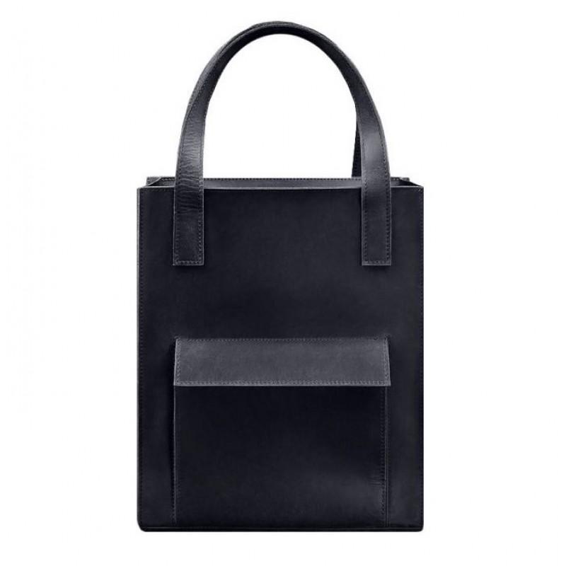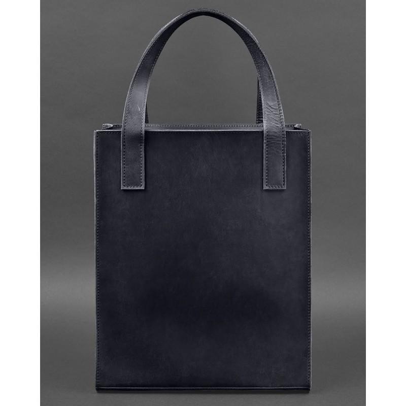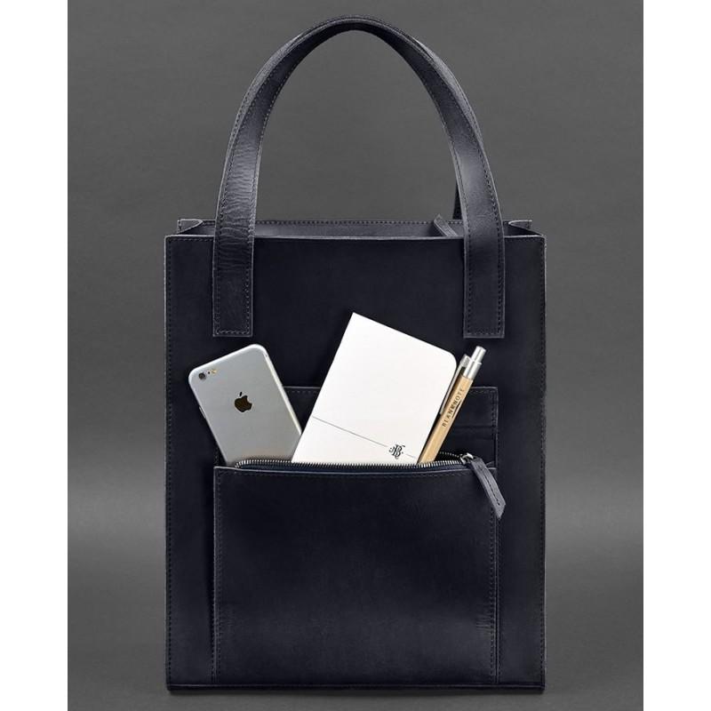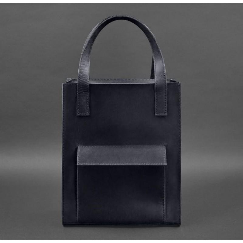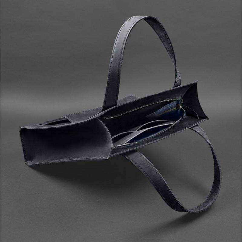 Кожаная сумка шоппер "Бэтси" с карманом (синяя)