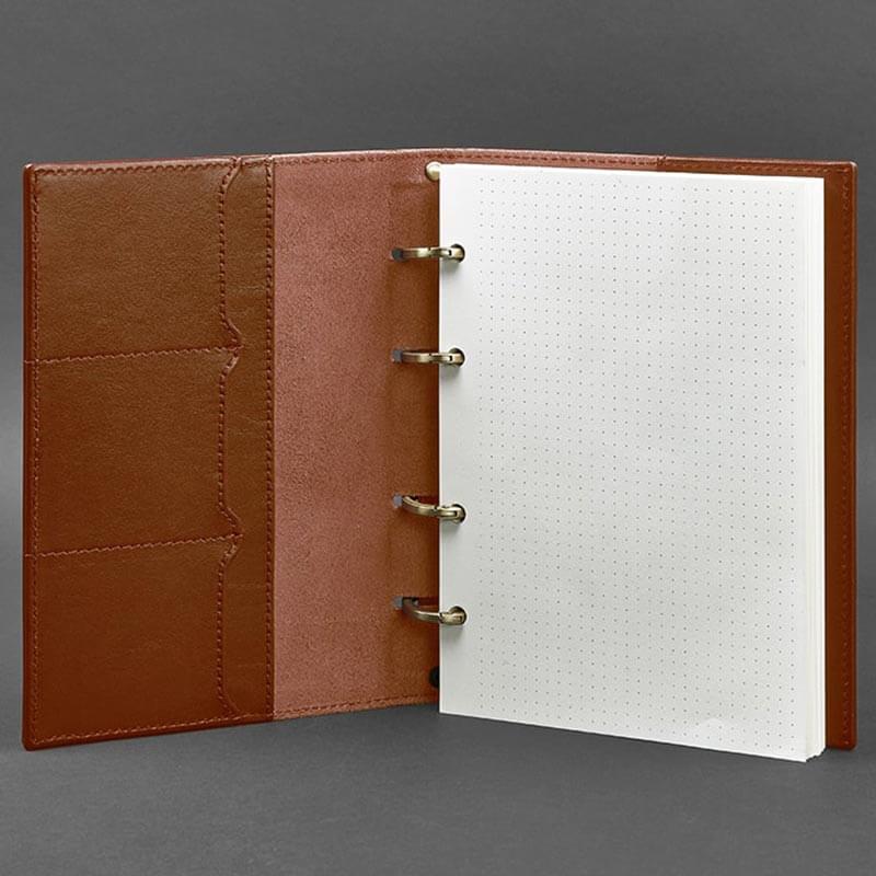 Блокнот на кольцевом механизме идеален для тех, кто ценит практичность и качество. Этот софт-бук может похвастаться безупречной презентабельностью и функциональностью, его можно носить с собой повсюду, не боясь порвать или помять, благодаря прочному кожаному переплету.