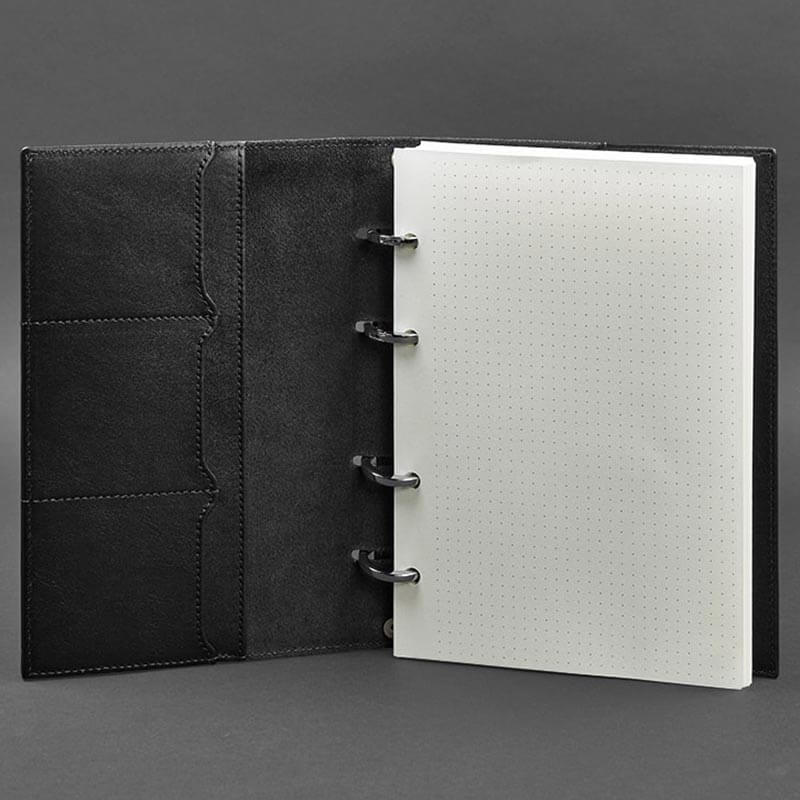 Блокнот на кольцевом механизме идеален для тех, кто ценит практичность и качество. Этот софт-бук может похвастаться безупречной презентабельностью и функциональностью, его можно носить с собой повсюду, не боясь порвать или помять, благодаря прочному кожаному переплету.