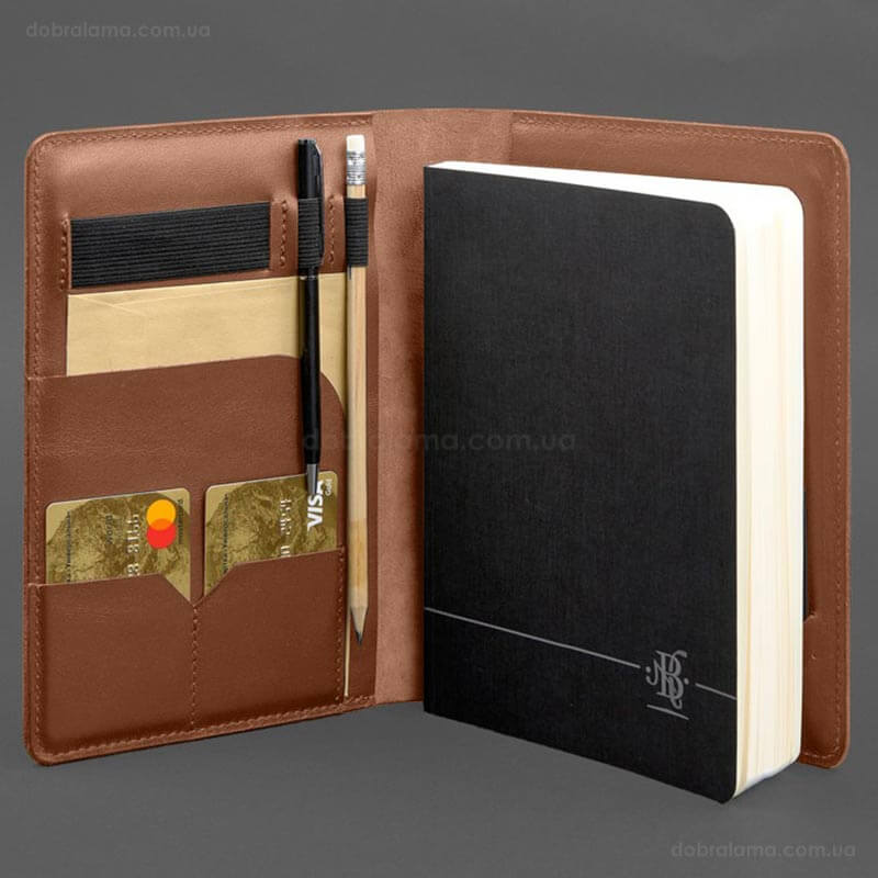 Обложка выполнена из прочной натуральной кожи Krast. Эта кожа достаточно плотная и имеет красивую поверхность.