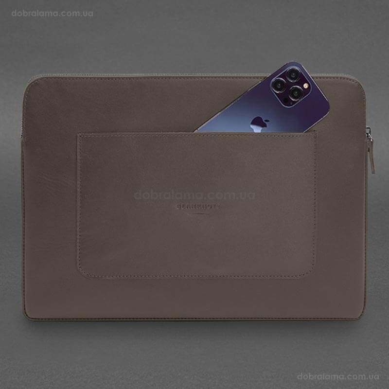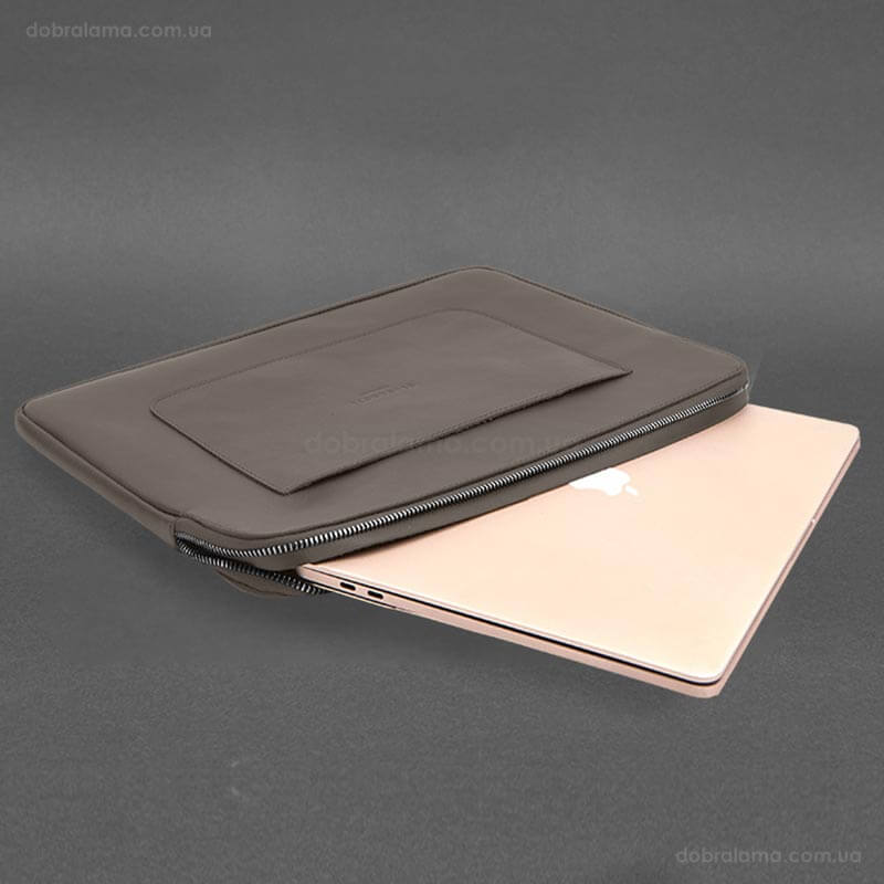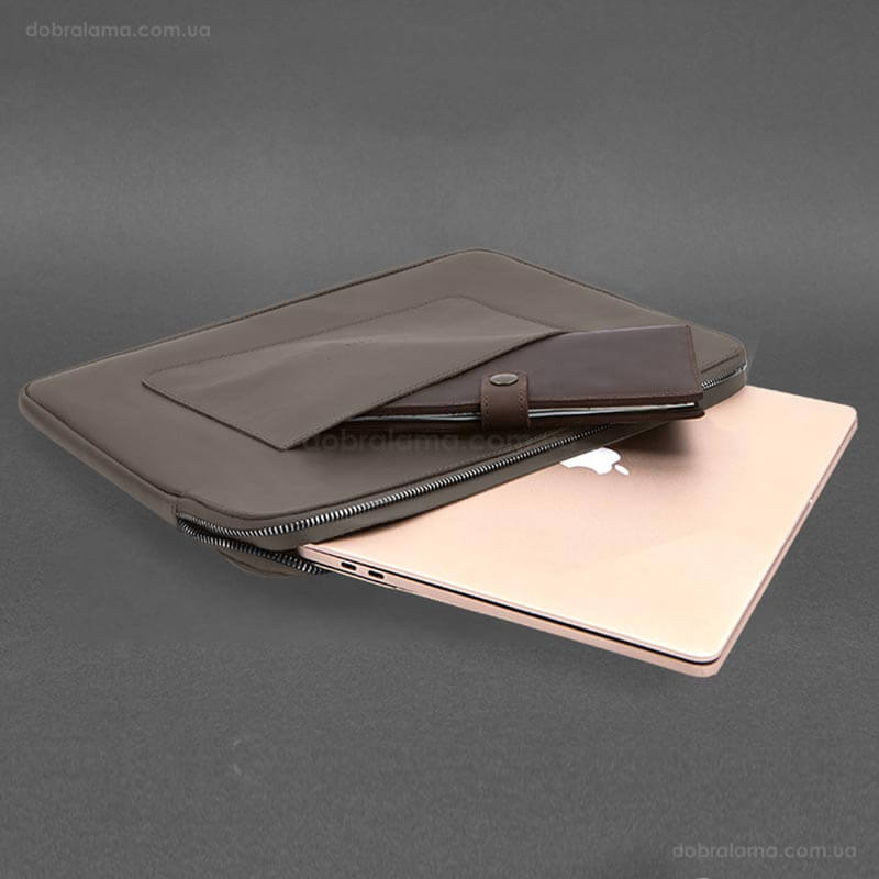 Кожаный чехол для ноутбука на молнии с карманом и хлястиком 29.1 (темно-бежевый)