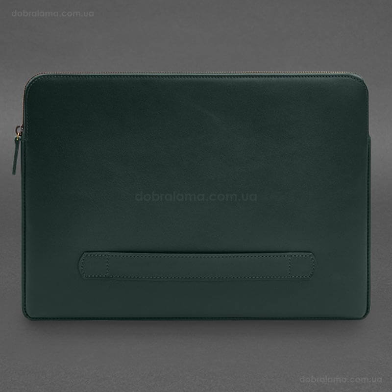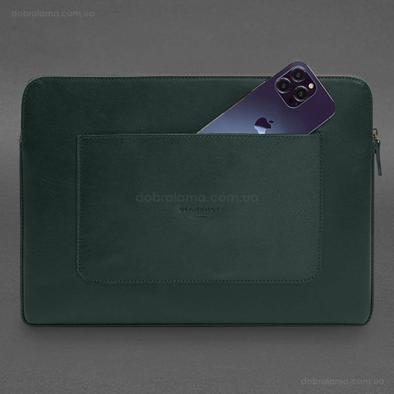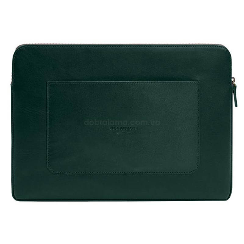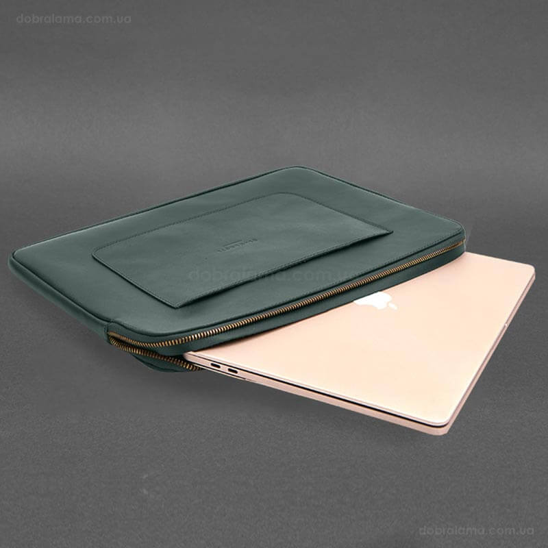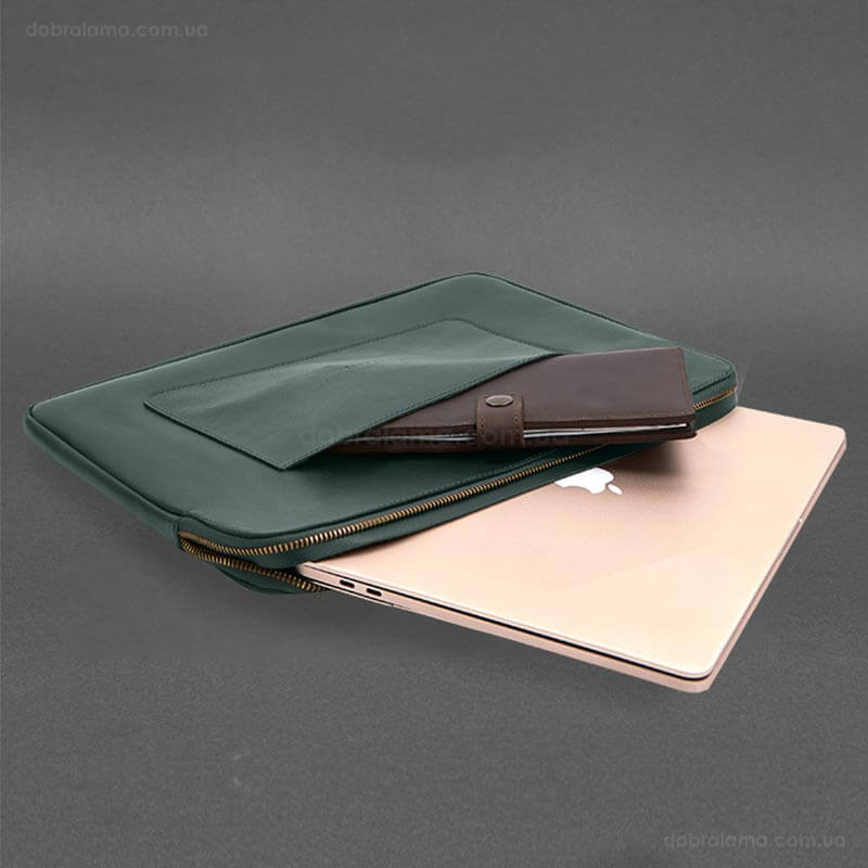 Кожаный чехол для ноутбука на молнии с карманом и хлястиком 29.1 (зеленый)