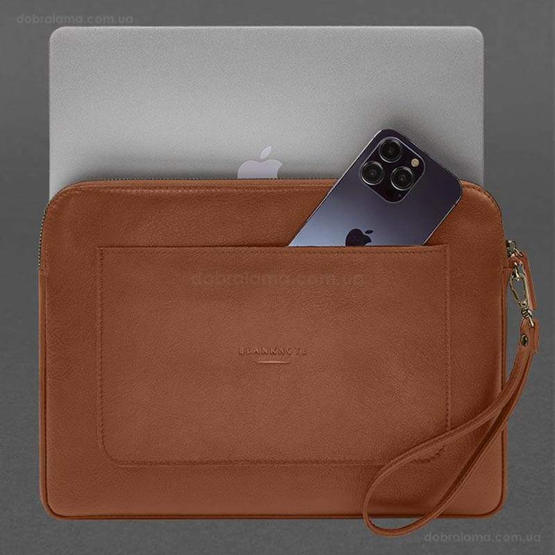 Кожаный чехол для ноутбука на молнии с карманом и петлей на руку 29.0 (светло-коричневый)