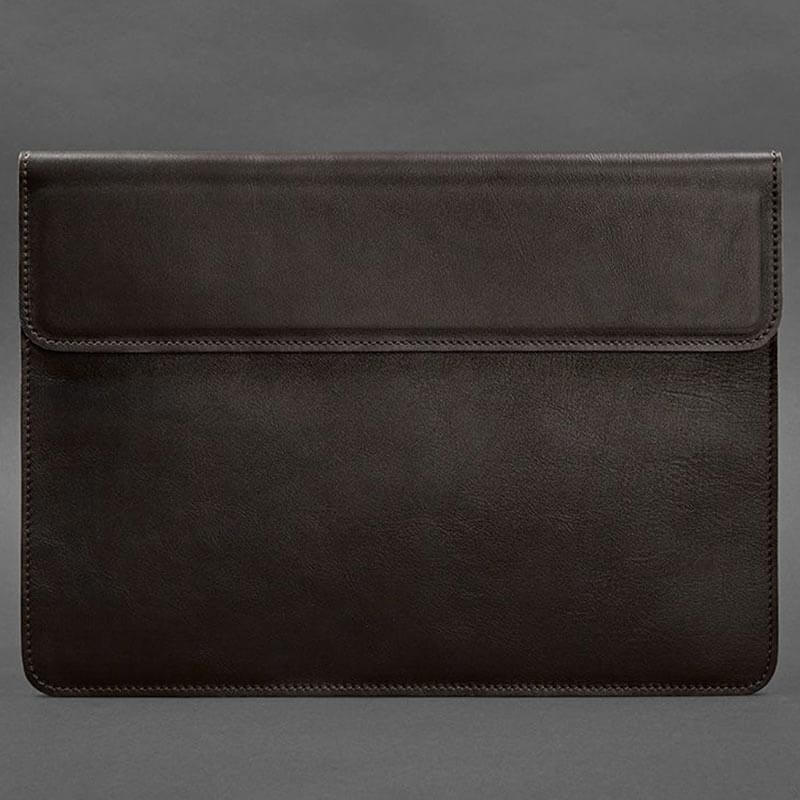 Кожаный чехол-конверт на магнитах для MacBook 14'' (темно-коричневый) кожа Krast
