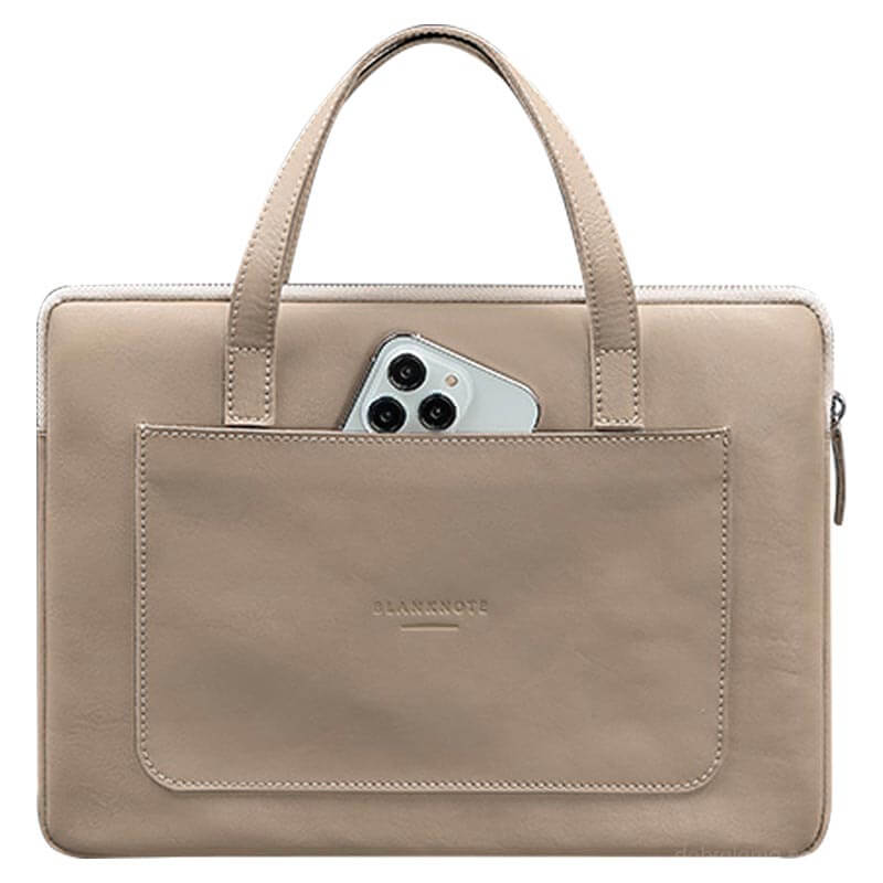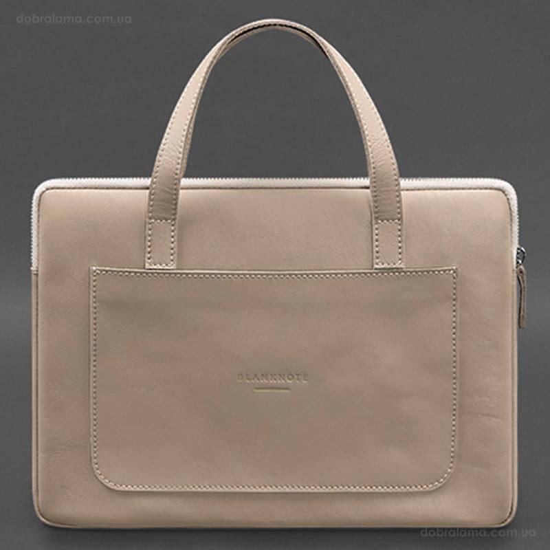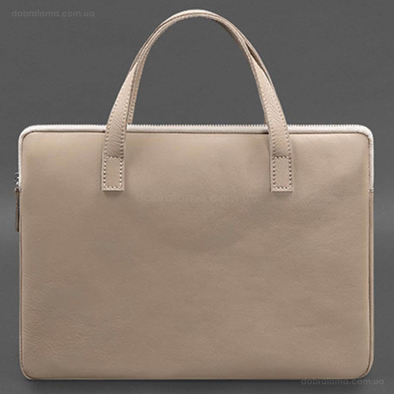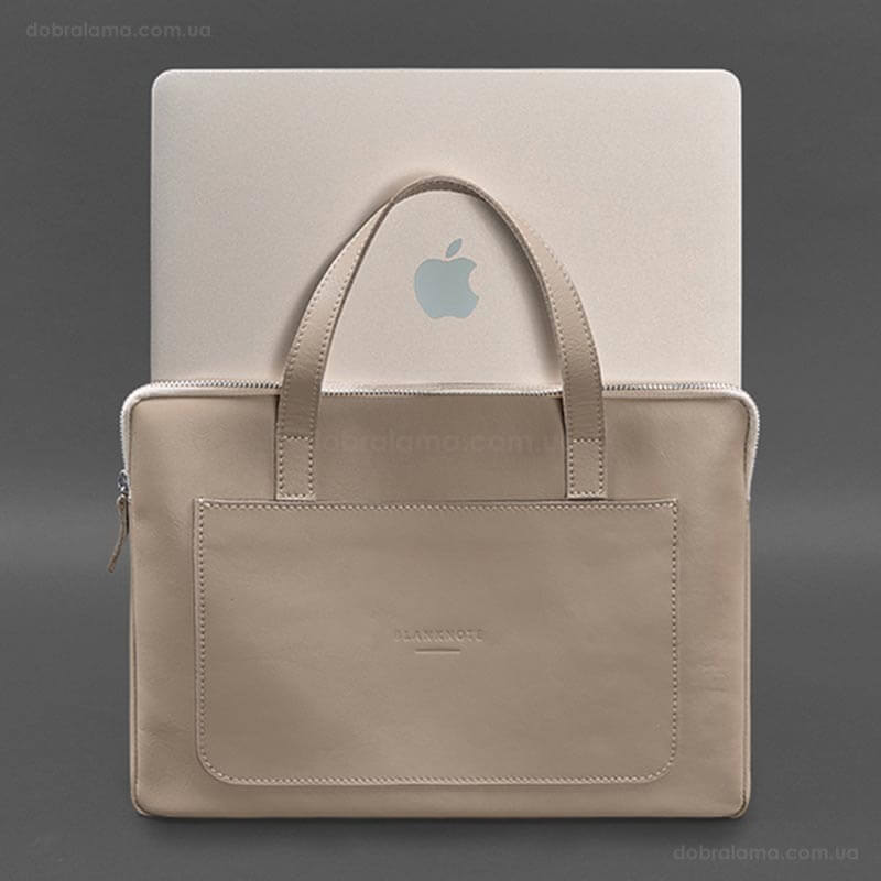 Кожаный чехол-сумка с ручками для ноутбука 13" (светло-бежевый)