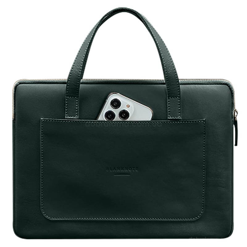 Кожаный чехол-сумка с ручками для ноутбука 13" (зеленый)