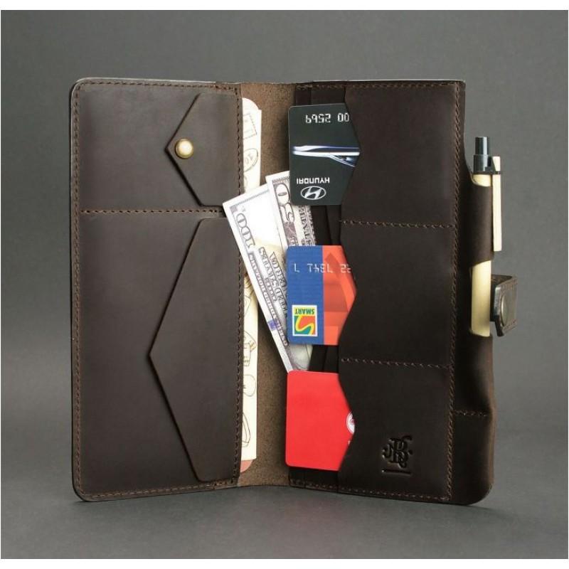 Тревел кейс представляет собой конверт, выполненный полностью вручную из цельного куска очень плотной натуральной кожи, в который поместятся все билеты, кредитки, визитки, паспорта, карты, деньги и многое другое. Теперь не нужно долго искать по всей сумке и карманам тот или иной документ, холдер предоставляет Вам возможность хранить все это в нем:)