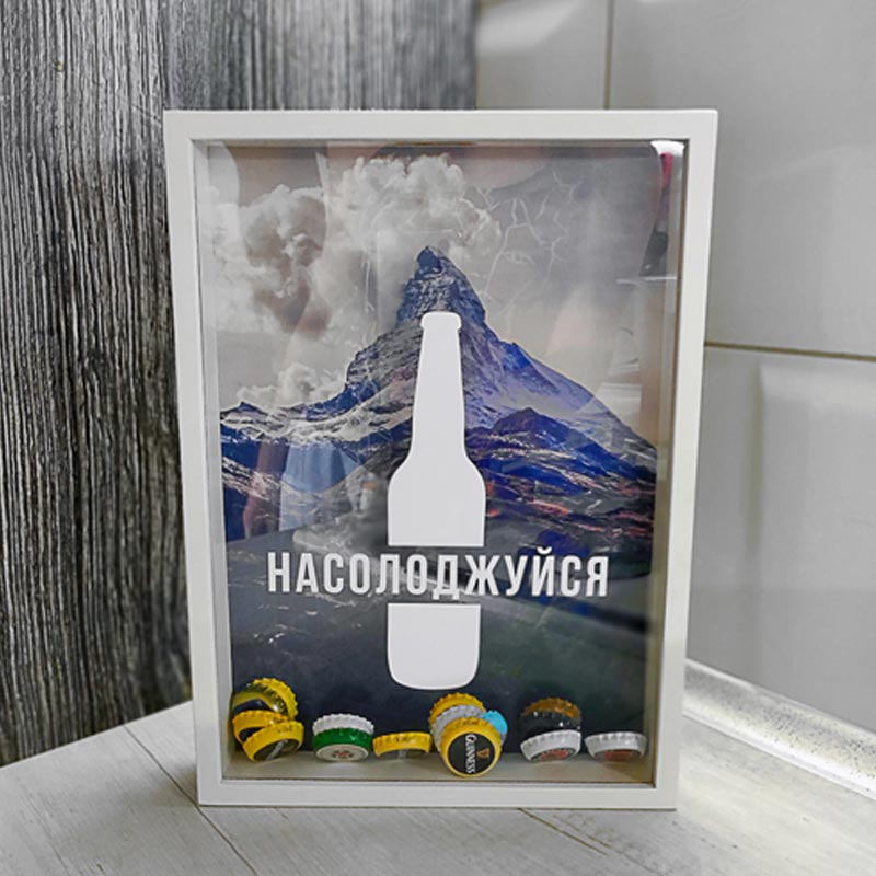 Рамка для пивных крышек – интересная идея для декора кухни или гостиной, она отлично впишется в любой интерьер. Ее можно подарить на новоселье мужчине, на День рождения, Новый год или другой праздник отцу, мужу, другу или коллеге.