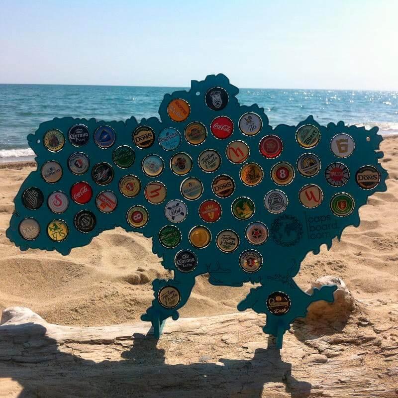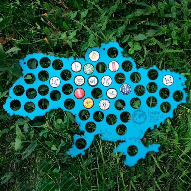 Необычные подарки с украинской символикой в трендовом мятном цвете - доски для пивных пробок Capsboard Ukraine Mint останутся на память, как фотки со страниц фото-альбома про крутые каникулы. Модный мятный цвет карты подчеркнет, что Вы "на стиле" и мыслите неформатно о том, как можно сохранить воспоминания про отпуск!