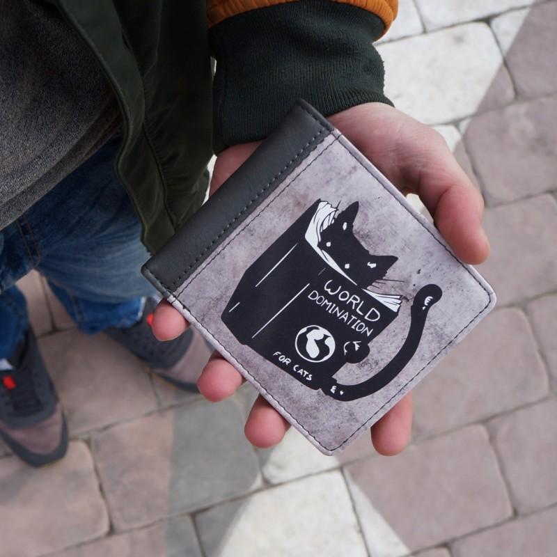 Дизайнерский кошелек из экокожи с креативным принтом на поверхности.