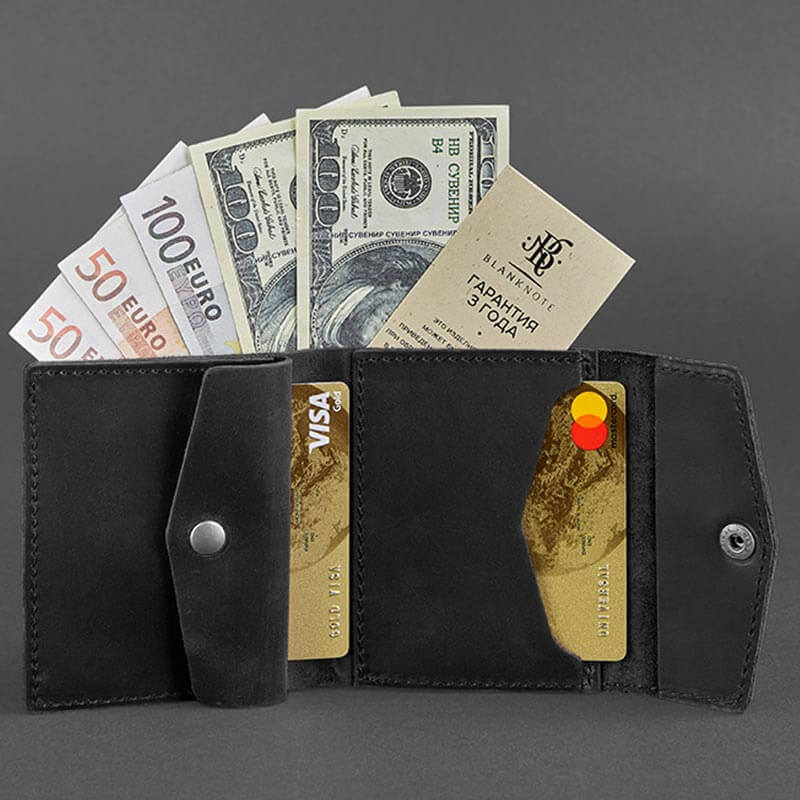 Кошелек женский из натуральной кожи 2.1 (черный) кожа Crazy Horse