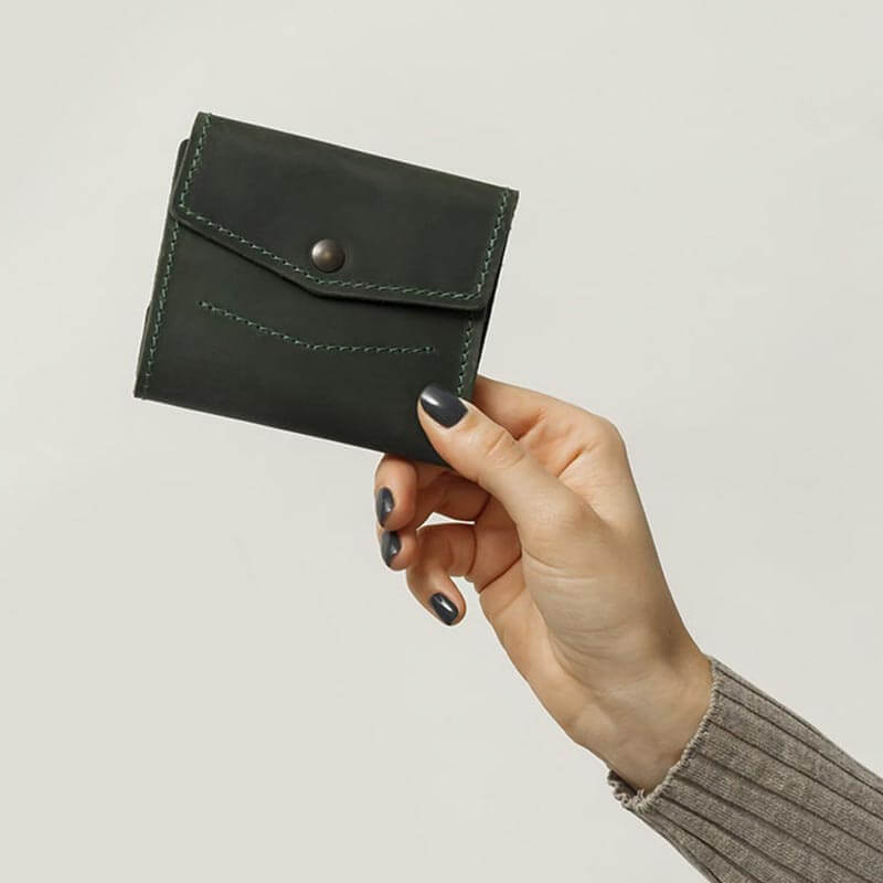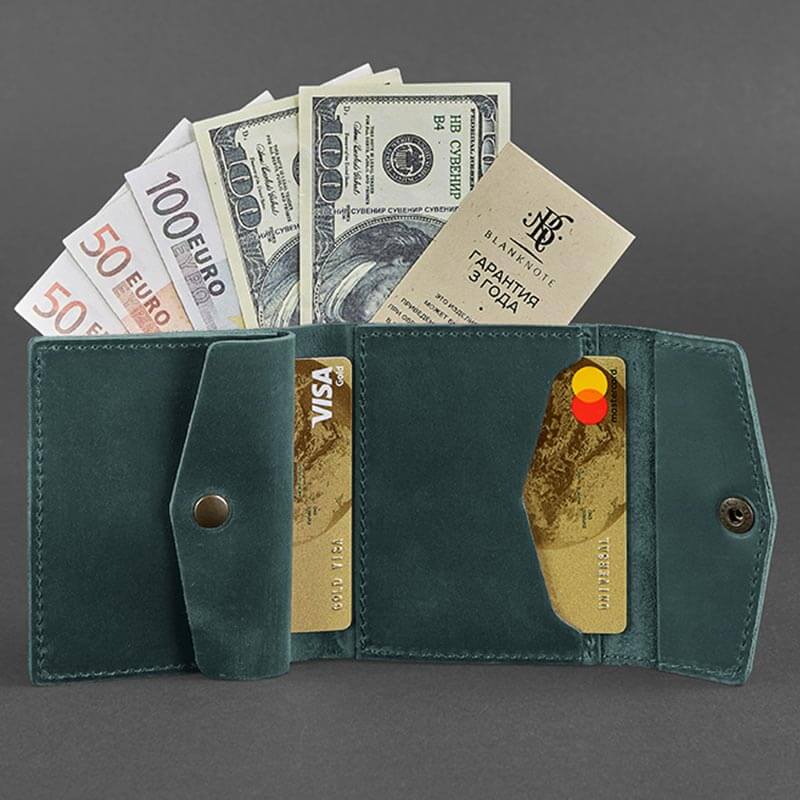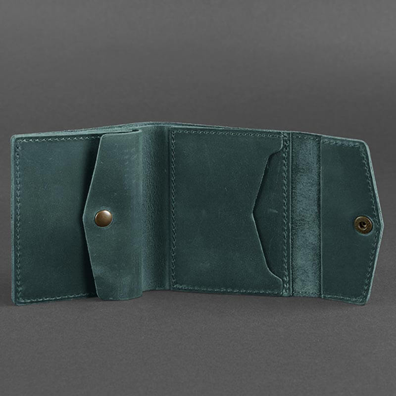 Зеленый кошелек двойного сложения из натуральной кожи Crazy Horse.