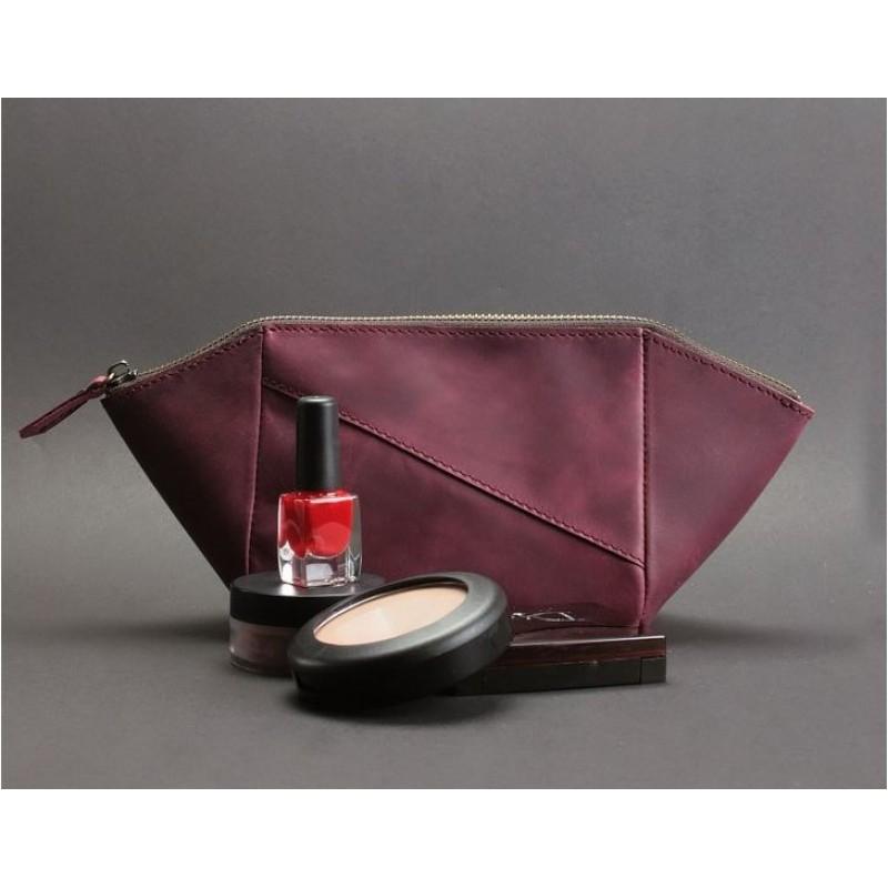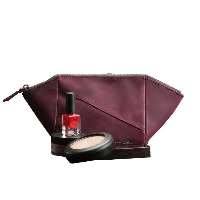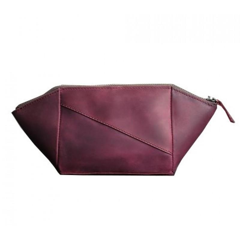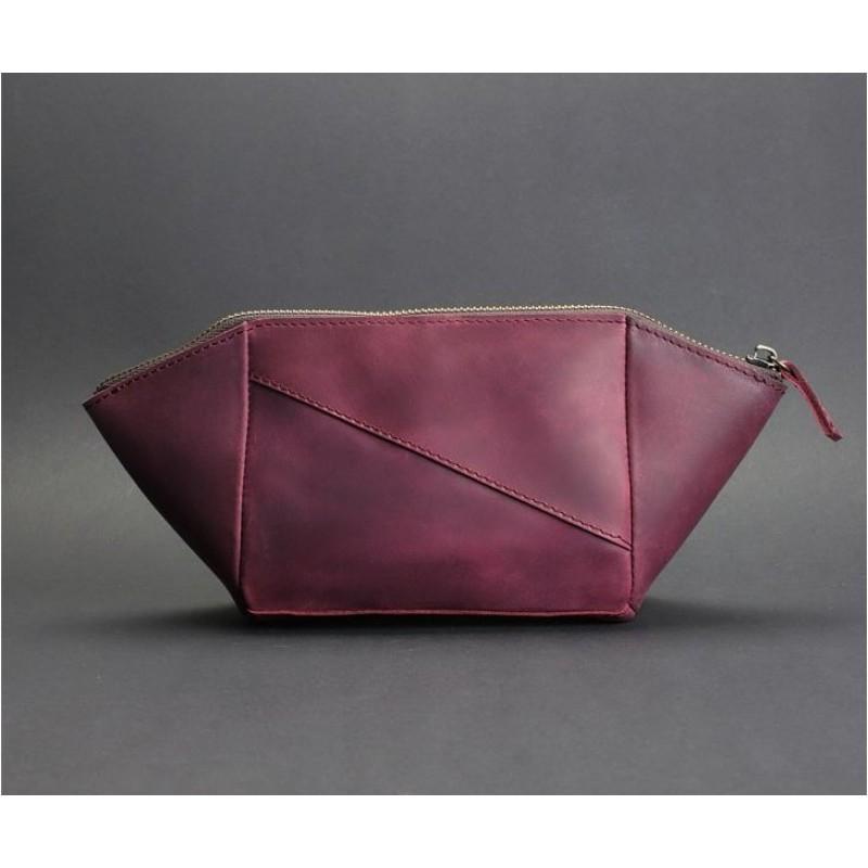 Косметичка из натуральной кожи (бордовая) кожа Crazy Horse