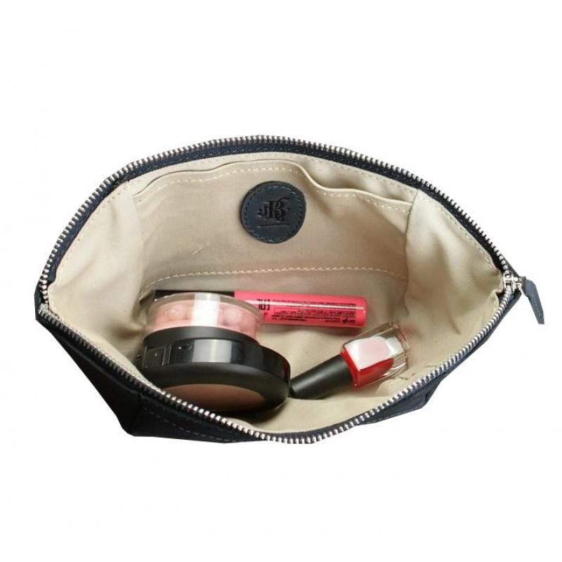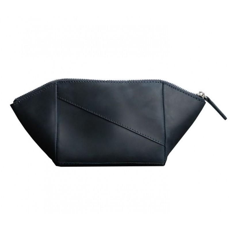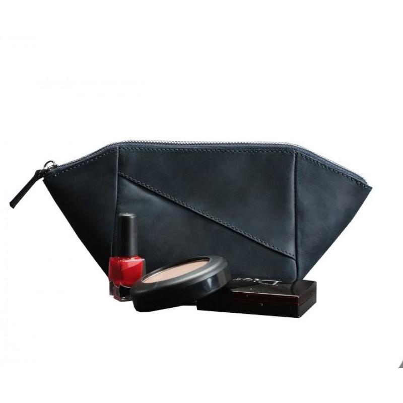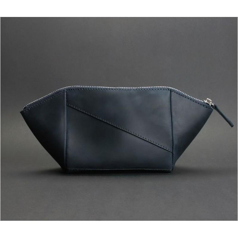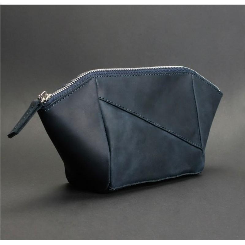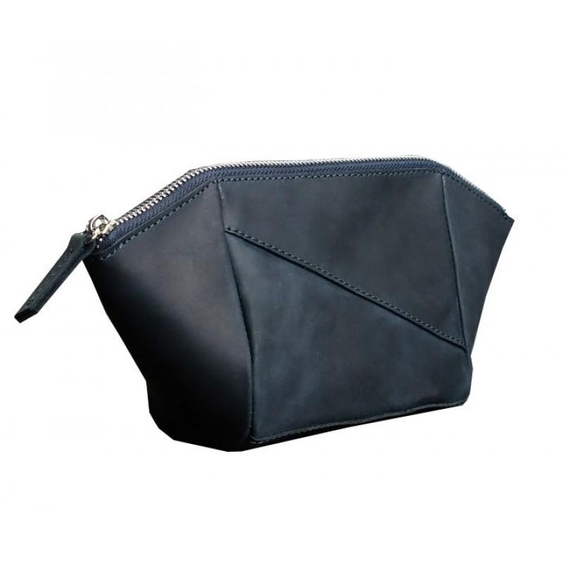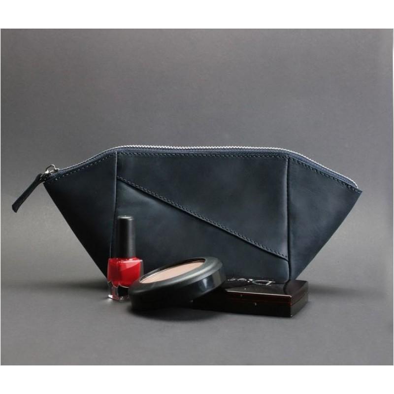 Косметичка из натуральной кожи (темно-синяя) кожа Crazy Horse
