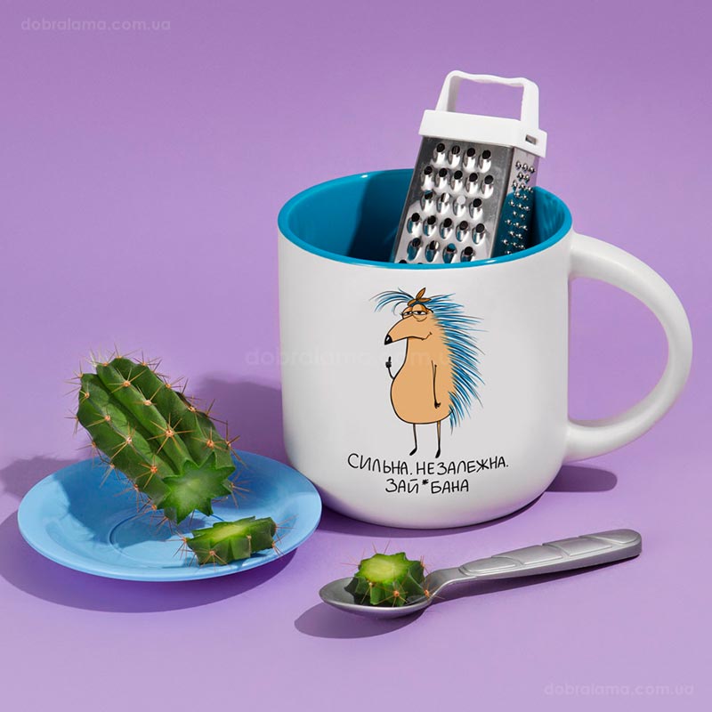 Кружка с ежиком «Сильна. Незалежна. Зай*бана» (350 мл)