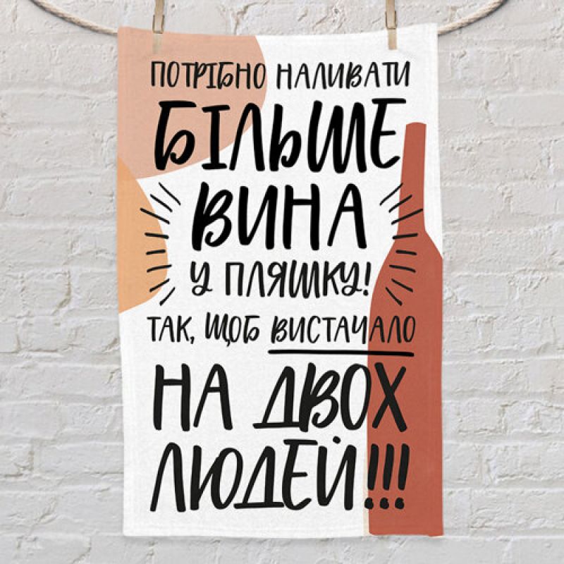 Кухонное полотенце с принтом "Потрібно наливати більше вина у пляшку!"
