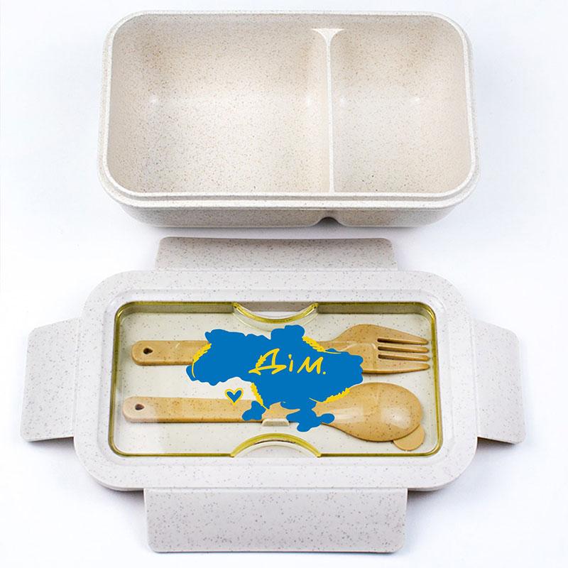 Контейнер для еды с собой - это биоразлагаемое сырье из переработанных волокон пшеницы и соломы. Главная фишка - не токсичность при контакте с горячей едой и при разогреве ее в микроволновой печи. Идеальные по размеру: два отдела для пищи и крышка, которая плотно прилегает при закрывании за счет силиконового ободка. Даже суп не перельется! В комплекте вилка и ложка, которые удобно прячутся под крышку.