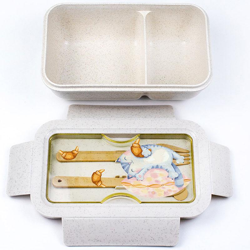 Ланч бокс из пшеничного волокна «Кот с круассаном»
