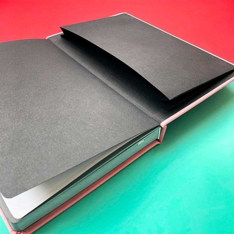 • чистые листы для творчества, черные форзацы и карман