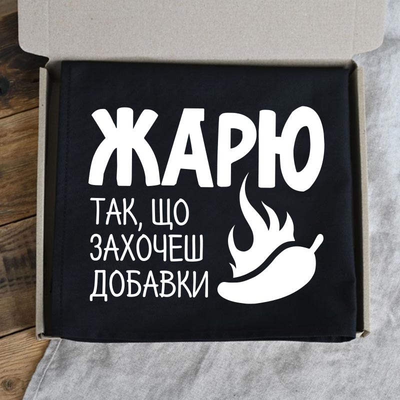 Мужской фартук «Жарю так, що захочеш добавки» (черный)