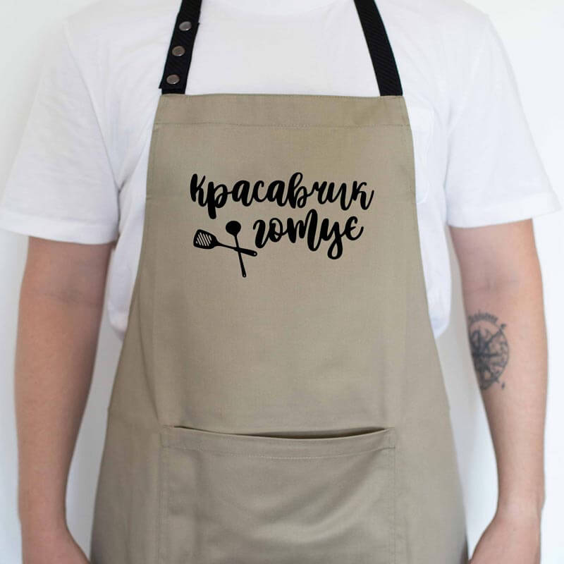 Мужской фартук "Красавчик готує" (бежевый)