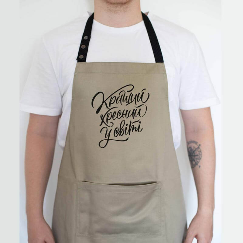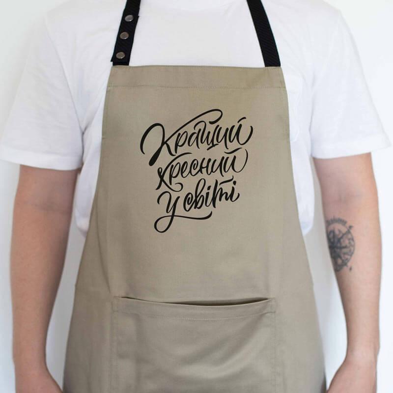 Мужской фартук "Кращий хресний у світі" (бежевый)