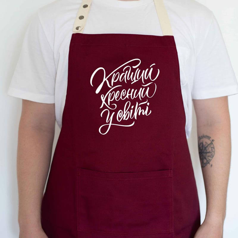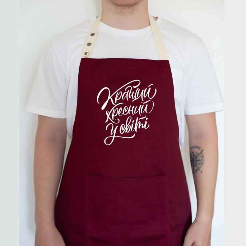 Мужской фартук "Кращий хресний у світі" (бордовый)