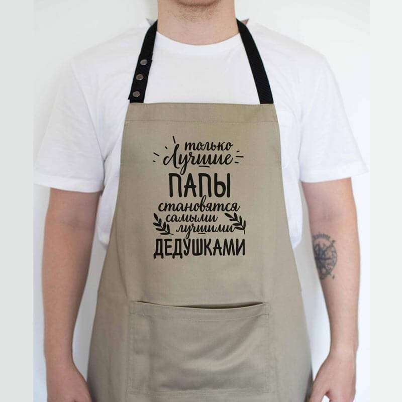 У Вашего любимого папы получается самый вкусный плов и борщ, который его внуки уплетают за обе щеки? Это повод порадовать его милым подарком, который растрогает его сердце. Красивый фартук с качественным принтом - отличный подарок на День Рождения, Новый Год, 14 октября и любой другой праздник.