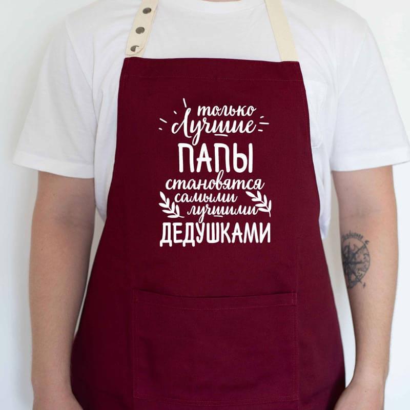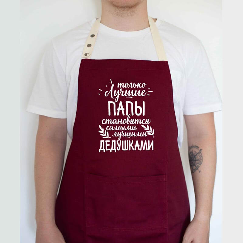 У Вашего любимого папы получается самый вкусный плов и борщ, который его внуки уплетают за обе щеки? Это повод порадовать его милым подарком, который растрогает его сердце. Красивый фартук с качественным принтом - отличный подарок на День Рождения, Новый Год, 14 октября и любой другой праздник.