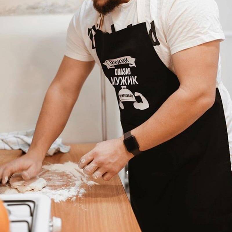 А теперь представьте, как будет выглядеть мужчина у плиты в фартуке. Круто, да? Тогда скорее жмите "купить", а мы позаботимся, чтобы фартушек как можно скорее оказался у самого лучшего мужчины :)