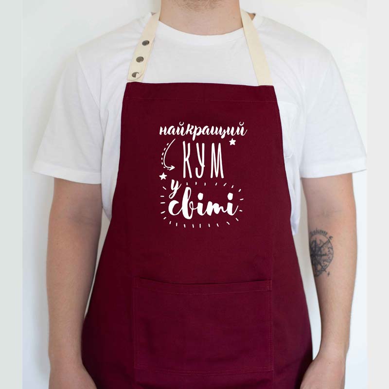 Мужской фартук "Найкращий кум у світі" (бордовый)